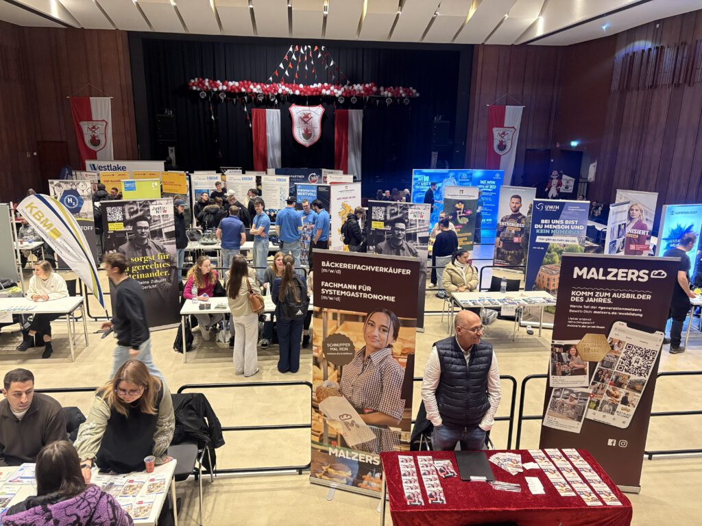Am 4. Februar 2026 fand in unserer Aula die Premiere der „Fair2Future“-Jobmesse statt. 23 Unternehmen und Institutionen präsentierten sich unseren Schülerinnen und Schülern. Neben den größten Arbeitgebern der Region waren auch Berufskollegs und Universitäten vor Ort und konnten die Jahrgänge 9 bis 13 für sich begeistern. Zusätzlich berichteten ehemalige Absolventinnen und Absolventen der Jahrgangsstufen 10 und 13 über ihre aktuellen Werdegänge und teilten wertvolle Erfahrungen.