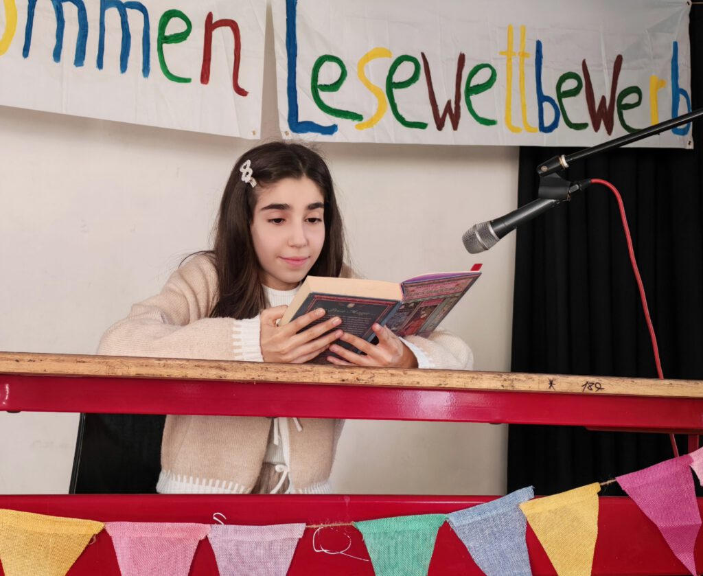 Am 25.02 fand in der Justus-Liebig-Schule in Duisburg Hamborn der Wettbewerb der Jungen und Mädchen statt, die am besten lesen können. Auch aus unserer Schule war Nergs aus der 6a dabei. Aus insgesamt 13 Schulen des Duisburger Nord-Bezirks kamen die Schülerinnen und Schüler zusammen, die die besten Leserinnen und Leser ihrer Schule sind. Diese Leserinnen und Leser der 6. Klassen waren damit schon Gewinner. Es wurde beim Vorlesen darauf geachtet, wie flüssig gelesen wurde und ob der Text gut betont vorgetragen wurde. Eine Jury aus drei Personen bewertete die jungen Leserinnen und Leser. Die Vertreterin unserer Schule konnte sich gut präsentieren und las sehr betont. Sogar einen unbekannten Text konnte sie gut vortragen. Daher konnte Nergs für die Gesamtschule Emschertal einen respektablen Erfolg erzielen. Zum Dank bekam sie ein Buch geschenkt und von ihrer Klasse einen Gutschein für Ihren Mut, unsere Schule bei dem Wettbewerb zu vertreten.